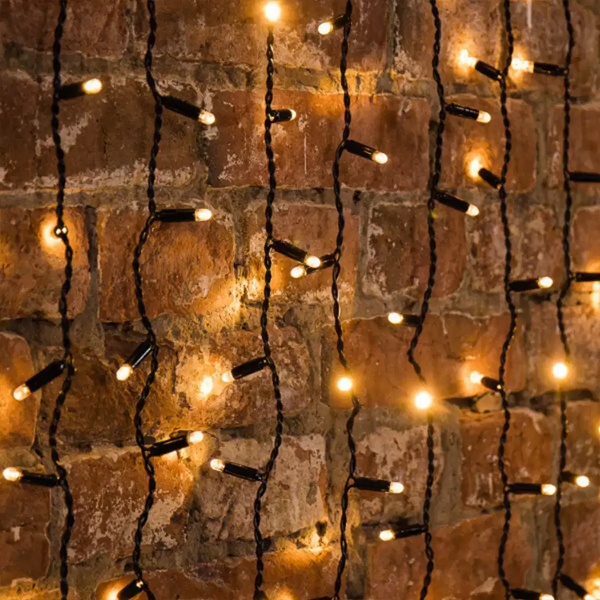 • Гирлянда светодиодная Дождь 2x0,8м 160LED 230В теплый белый, эффект мерцания, черный провод IP65