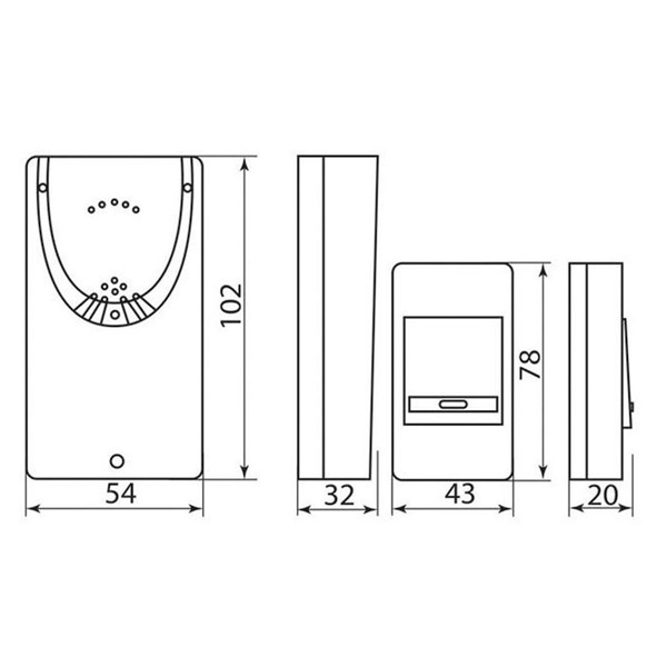 В комплект входит базовая установка и кнопка вызова. Расстояние между передатчиком импульса и приемником может достигать 100 метров. Оба изделия выполнены в стильном дизайне с использованием необычных форм и сочетания цветового спектра. Воспроизводящая установка имеет в памяти 32 мелодии, которые последовательно чередуются. Питание осуществляется от двух батареек типа ААА (1,5В). Источник энергии для кнопки вызова – батарея 12 Вольт, типа 23А, поставляется в заводской комплектации.