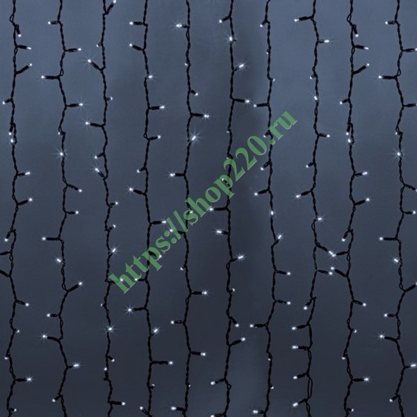 237-185 Гирлянда Светодиодный Дождь 2х9мм 2200LED белый IP65 постоянное свечение, черный каучук, 230В