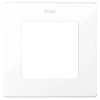 Здесь, предлагается рамка белого цвета, на три установочных места. Изделие поддерживает классический формат – плоский, выступающий всего на 7 мм. над рабочей поверхностью прямоугольник. Монтажная операция осуществляется нажатием, с защелкиванием на суппортную пластину.