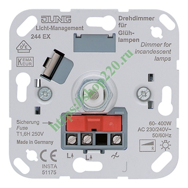 Диммер поворотный 60-400Вт для л.н. и галоген(задержка фазы) Jung механизм 244EX