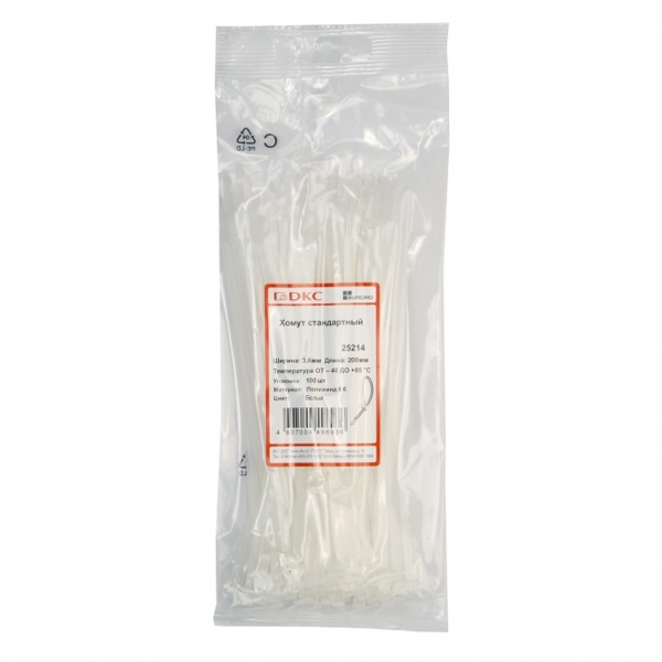 25214 Хомут P6.6 стандартный белый 3,6х200 мм [упаковка 100шт] DKC