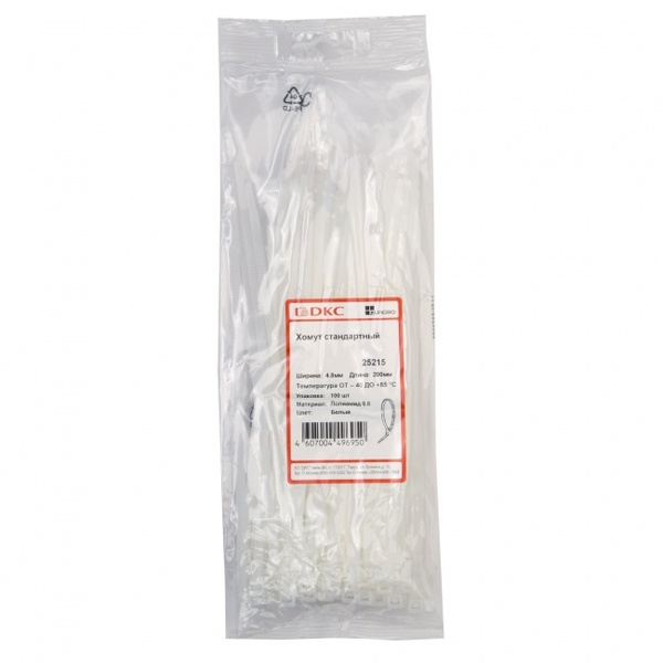 25215 Хомут P6.6 стандартный белый 4,8х200 мм [упаковка 100шт] DKC