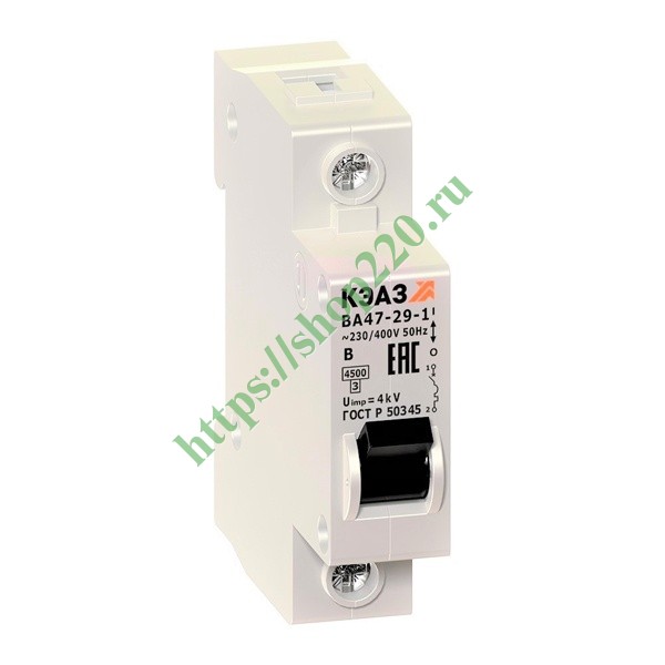 Автоматический выключатель ВА47-29 1Р 20А 4,5кА характеристика B (ВА47-29-1B20-УХЛ3) КЭАЗ (автомат электрический)