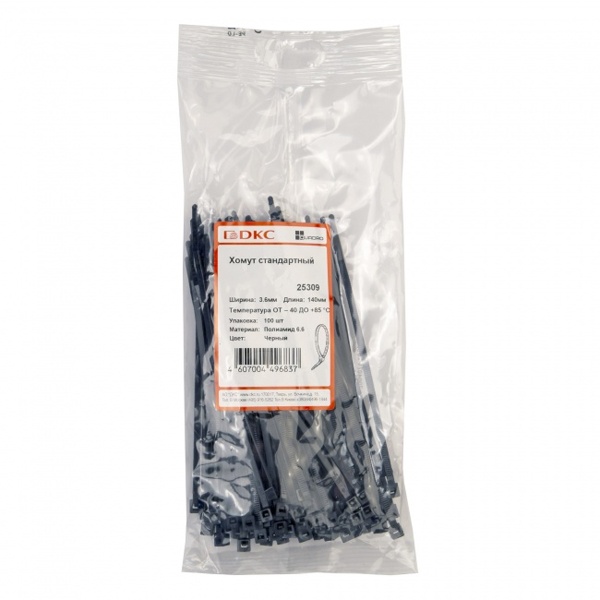 25309 Хомут P6.6 стандартный черный 3,6х140 мм [упаковка 100шт] DKC