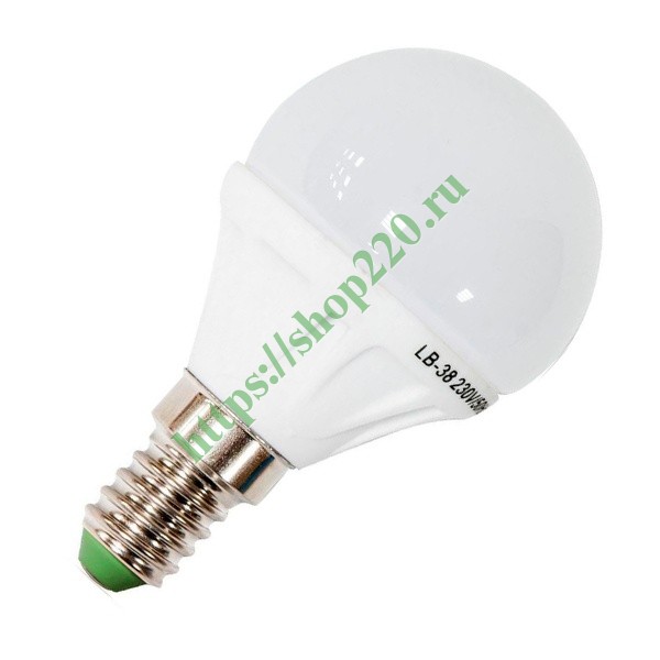 Светодиодная лампа шарик белого света Ферон мощностью 5 Ватт на 220 Вольт с цоколем E14 25403