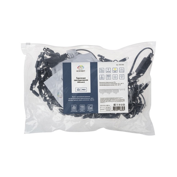 Гирлянда "Бахрома" ("Айсикл") представляет собой гибкий горизонтальный шнур-шину, к которому через определенные промежутки крепятся вертикальные нити разной длины со светодиодами. Она имитирует сосульки и может послужить эффектным и оригинальным решением при декорировании карнизов домов, арок, фасадов зданий, витрин магазинов, а также стать элементов декора внутренних интерьеров помещений.