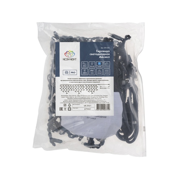 Гирлянда "Бахрома" ("Айсикл") представляет собой гибкий горизонтальный шнур-шину, к которому через определенные промежутки крепятся вертикальные нити разной длины со светодиодами. Она имитирует сосульки и может послужить эффектным и оригинальным решением при декорировании карнизов домов, арок, фасадов зданий, витрин магазинов, а также стать элементов декора внутренних интерьеров помещений.