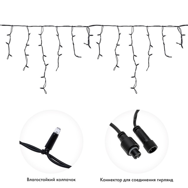 Важной оосбенностью данного исполнения является каучуковый провод, благодаря которому гирлянду отличает высокая надежность в условиях российского климата, даже в самых холодных регионах страны!