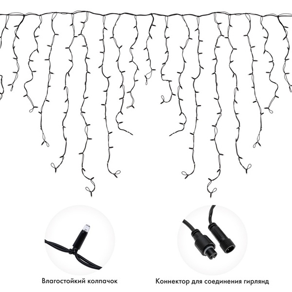 255-295 Гирлянда бахрома светодиодная 6,0x1,5м 480LED белый IP67 постоянное свечение, черный каучук, 230В фото 6