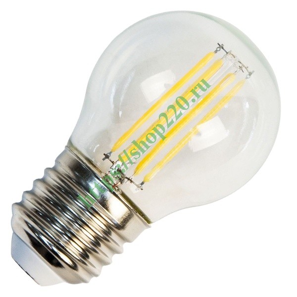 Филаментная лампочка шарик с нитевидными светодиодами мощностью 5 Вт с цоколем E27 холодный свет прозрачная колба 25583
