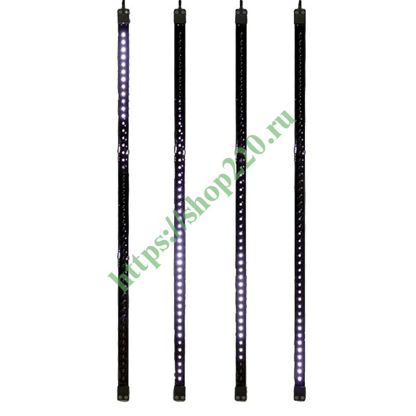 Она представляет собой прямоугольную трубку длиной 80 см в пластиковом корпусе чёрного цвета. Внутри надежно закреплена двусторонняя тонкая плата со светодиодами и микрочипом, обеспечивающим динамику с эффектом стекающей капли. Гирлянда работает от напряжения 9,5 V и имеет влагозащищённое исполнение, что позволяет безопасно использовать её как в помещении, так и на улице.