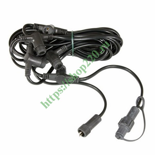 Комплект подключения «Светодиодных сосулек» 9,5 В длиной 50 см и 80 см. Длина шнура - 6,5 метра, 5 патронов, шаг патронов - 1,5 метра, цвет провода - черный. Комплекты могут соединяться между собой.