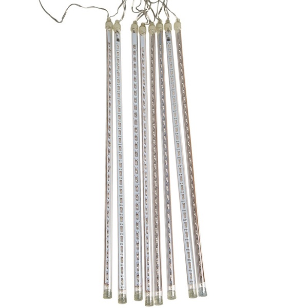 Светодиодная гирлянда «Тающие сосульки» - это оригинальное, красивое и современное средство оформления фасадов и интерьеров зданий, деревьев, витрин и т.д. Она представляет собой комплект из 4-х прозрачных пластиковых трубок, расположенных на расстоянии 50 см. По всей длине каждой трубки внутри надежно закреплена плата со светодиодами и микрочипом, обеспечивающим динамику с эффектом стекающей капли. Длина каждой трубки 20 см. Гирлянда работает от напряжения 24 V и имеет влагозащищённое исполнение, что позволяет безопасно использовать её как в помещении, так и на улице. Трансформатор для подключения идёт в комплекте с гирляндой. Цвет светодиодов - белый.