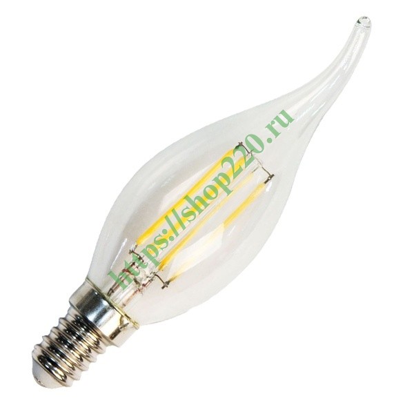 Лампа филаментная светодиодная диммируемая LB-69 свеча на ветру Feron 5W 2700K 230V 530lm E14 4LED filament теплый свет. 25653