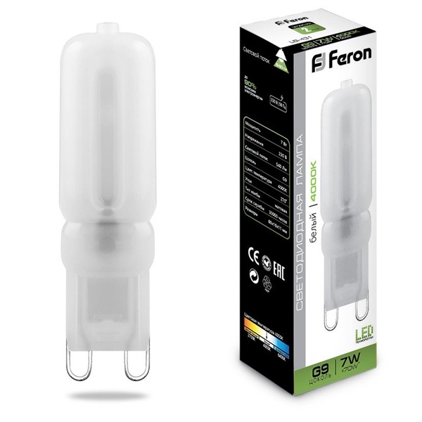 • Лампа светодиодная капсула Feron LB-431 7W 4000K 230V G9 пластик холодный свет