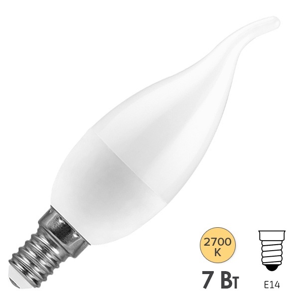 Лампа светодиодная, (7W) 230V E14 2700K на ветру C37T, LB-97