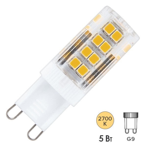 Лампа светодиодная, (5W) 230V G9 2700K JCD9, LB-432