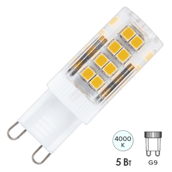 Лампа светодиодная, (5W) 230V G9 4000K JCD9, LB-432