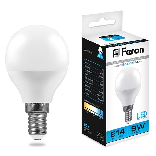 Светодиодная лампочка шарик Ферон LB-550 E14 9 Вт, холодный свет 25803