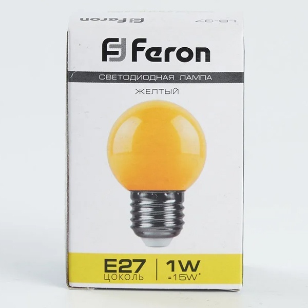 Лампа светодиодная FERON LB-37, G45 (шар), 1W 230V E27 (желтый), рассеиватель матовый желтый, угол рассеивания 270, 70*45мм