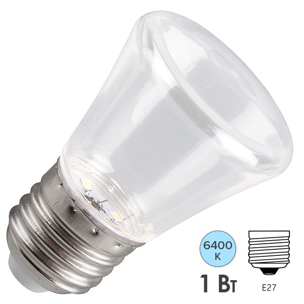 Лампа светодиодная FERON LB-372, C45 (колокольчик), 1W 230V E27 6400К (дневной), рассеиватель прозрачный 80Lm, угол рассеивания 220, 70*45мм