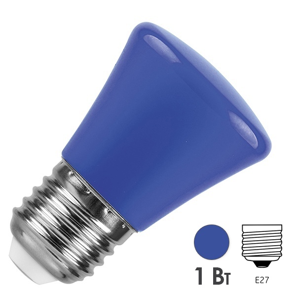 Лампа светодиодная, (1W) 230V E27 синий C45, LB-372