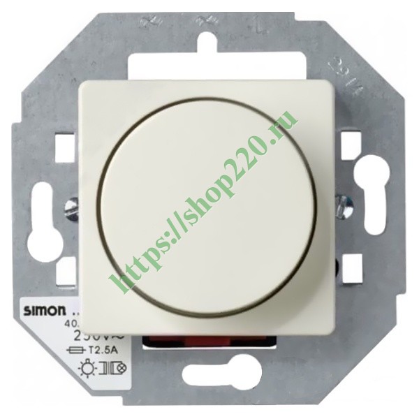Светорегулятор проходной поворотно-нажимной 40-500Вт широкий модуль Simon 27, слоновая кость (бежевый)