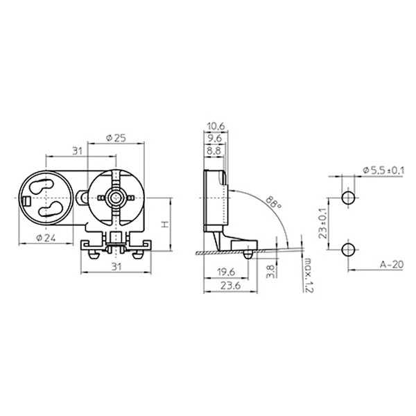 Вставной патрон G13 на ножках со стартеродержателем для линейных люминесцентных ламп Т8. 100557