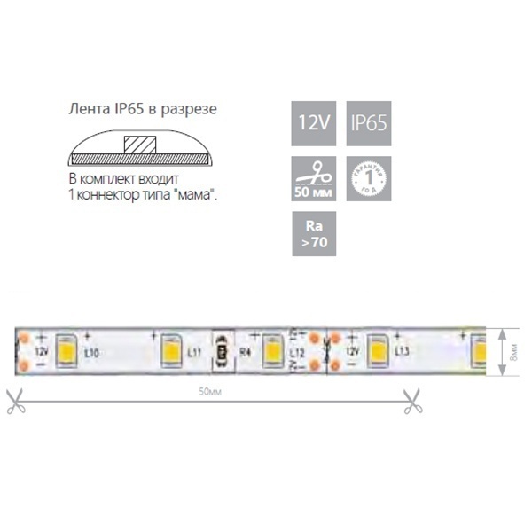 Напряжение - 12VМощность - 4.8WЦвет свечения - теплый белыйЦветовая температура - 2700ККоличество LED - 60/mСтепень защиты - IP65Цвет основания - на белом основанииДлина изделия - 5000ммШирина изделия - 8мм