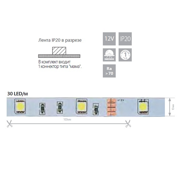 Напряжение - 12VМощность - 7.2WЦветовая температура - 3000KЦвет свечения - теплый белыйКоличество LED - 30/mСтепень защиты - IP22Цвет основания - на белом основанииДлина изделия - 5000ммШирина изделия - 10мм