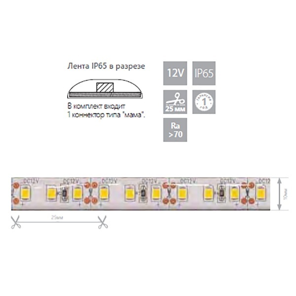 Лента светодиодная 12V IP65 герметичная