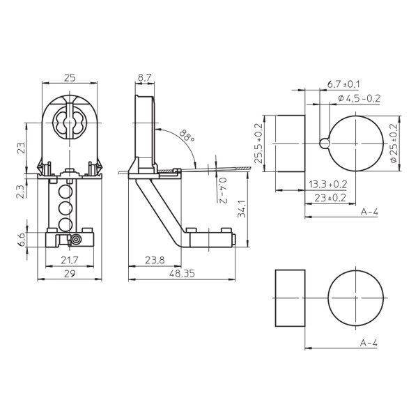 Сквозной патрон G13 со стартеродержателем и боковыми защёлками со стопором для линейных люминесцентных ламп Т8. 109332