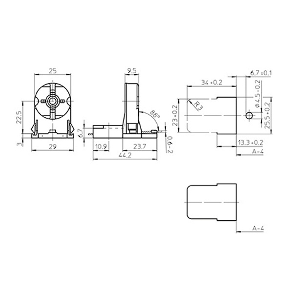 Сквозной патрон G13 со стартеродержателем и боковыми защёлками со стопором для линейных люминесцентных ламп Т8. 100579