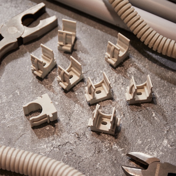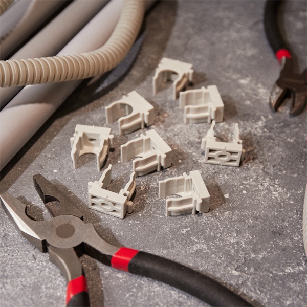 Пластиковые клипсы для труб используются для крепления проводки в гофрированных трубах, монтажа водопроводных труб и других работ по прокладке сетей с использованием труб. Их конструкция позволяет значительно сократить время установки благодаря применению монтажного пистолета, который обеспечивает мгновенную фиксацию клипс в бетоне, кирпиче и даже металле. Широкие лапки изделия обеспечивают надежную фиксацию труб без возникновения замятий. Клипсы легко крепятся на ствол пистолета, что устраняет необходимость держать их рукой во время монтажа.