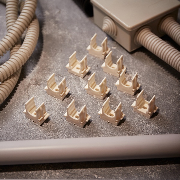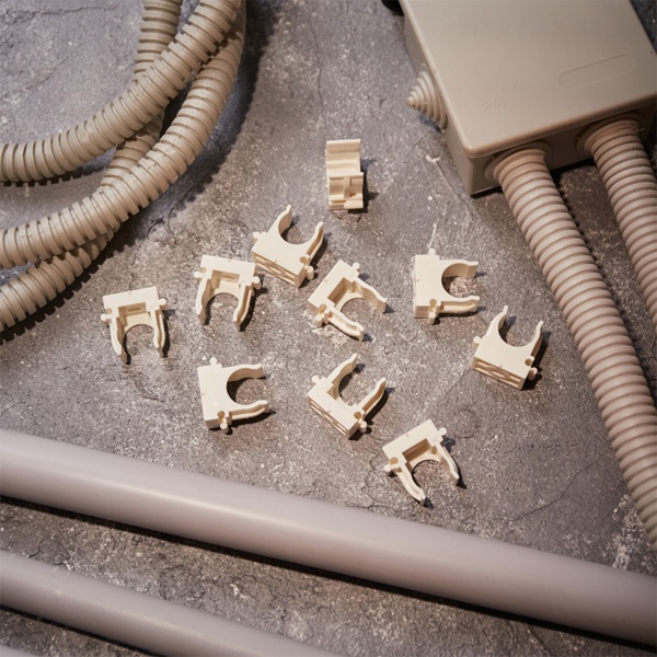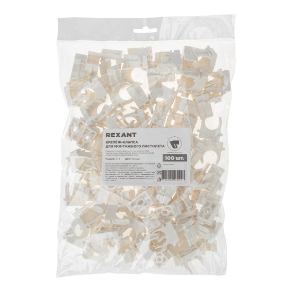 Пластиковые клипсы для труб используются для крепления проводки в гофрированных трубах, монтажа водопроводных труб и других работ по прокладке сетей с использованием труб. Их конструкция позволяет значительно сократить время установки благодаря применению монтажного пистолета, который обеспечивает мгновенную фиксацию клипс в бетоне, кирпиче и даже металле. Широкие лапки изделия обеспечивают надежную фиксацию труб без возникновения замятий. Клипсы легко крепятся на ствол пистолета, что устраняет необходимость держать их рукой во время монтажа.