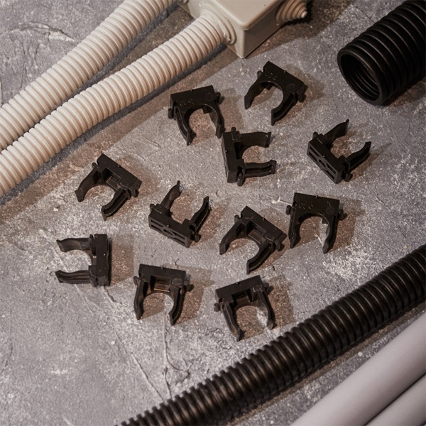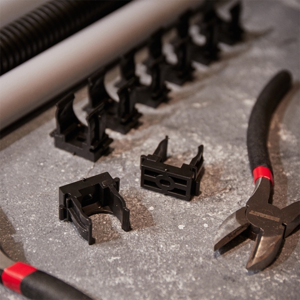Пластиковые клипсы для труб используются для крепления проводки в гофрированных трубах, монтажа водопроводных труб и других работ по прокладке сетей с использованием труб. Их конструкция позволяет значительно сократить время установки благодаря применению монтажного пистолета, который обеспечивает мгновенную фиксацию клипс в бетоне, кирпиче и даже металле. Широкие лапки изделия обеспечивают надежную фиксацию труб без возникновения замятий. Клипсы легко крепятся на ствол пистолета, что устраняет необходимость держать их рукой во время монтажа.