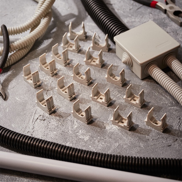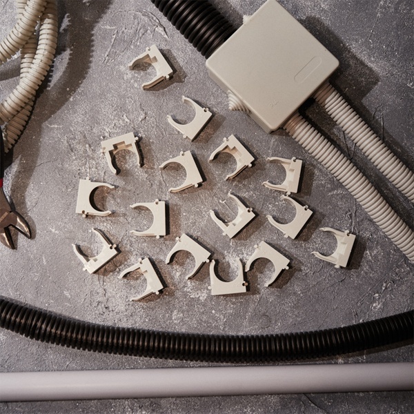 Пластиковые клипсы для труб используются для крепления проводки в гофрированных трубах, монтажа водопроводных труб и других работ по прокладке сетей с использованием труб. Их конструкция позволяет значительно сократить время установки благодаря применению монтажного пистолета, который обеспечивает мгновенную фиксацию клипс в бетоне, кирпиче и даже металле. Широкие лапки изделия обеспечивают надежную фиксацию труб без возникновения замятий. Клипсы легко крепятся на ствол пистолета, что устраняет необходимость держать их рукой во время монтажа.