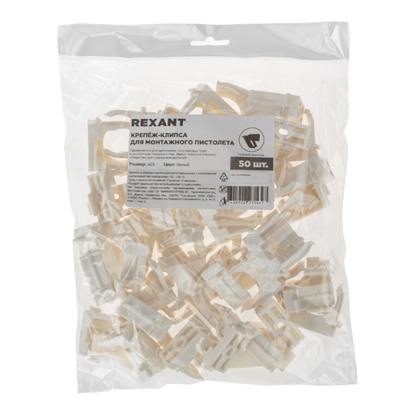 • Крепеж-клипса Rexant для труб под монтажный пистолет в п/э d25 [упак.50шт] белая