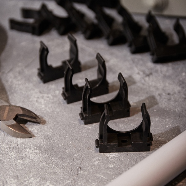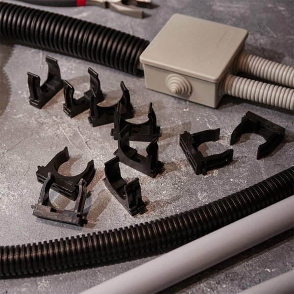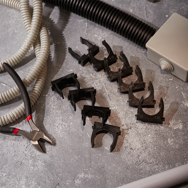 Пластиковые клипсы для труб используются для крепления проводки в гофрированных трубах, монтажа водопроводных труб и других работ по прокладке сетей с использованием труб. Их конструкция позволяет значительно сократить время установки благодаря применению монтажного пистолета, который обеспечивает мгновенную фиксацию клипс в бетоне, кирпиче и даже металле. Широкие лапки изделия обеспечивают надежную фиксацию труб без возникновения замятий. Клипсы легко крепятся на ствол пистолета, что устраняет необходимость держать их рукой во время монтажа.