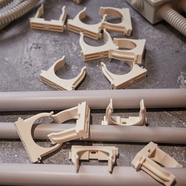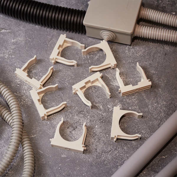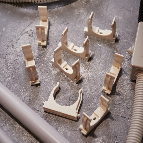 Пластиковые клипсы для труб используются для крепления проводки в гофрированных трубах, монтажа водопроводных труб и других работ по прокладке сетей с использованием труб. Их конструкция позволяет значительно сократить время установки благодаря применению монтажного пистолета, который обеспечивает мгновенную фиксацию клипс в бетоне, кирпиче и даже металле. Широкие лапки изделия обеспечивают надежную фиксацию труб без возникновения замятий. Клипсы легко крепятся на ствол пистолета, что устраняет необходимость держать их рукой во время монтажа.