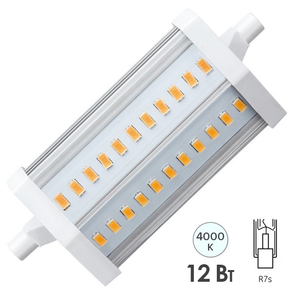 Светодиодная линейная диммируемая лампочка, мощностью 12 Ватт, с цоколем R7s, нейтральный белый свет 28211