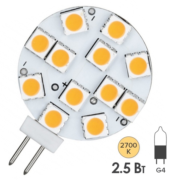 Светодиодная, низковольтная, капсульная лампочка, мощностью 2,5 Ватта, с цоколем G4, теплый свет 28275