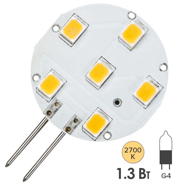 Светодиодная, низковольтная, капсульная лампочка, мощностью 1,3 Ватт, с цоколем G4, теплый свет 28287