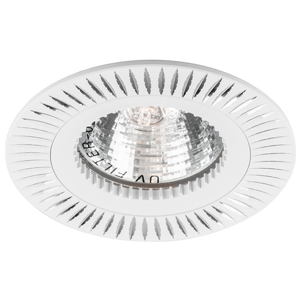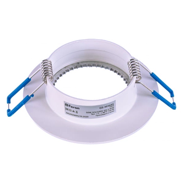 Встраиваемый точечный круглый светильник Ферон GS-M399 под лампу MR16 с цоколем G5.3 мощностью до 50 Ватт, белого цвета. 28341