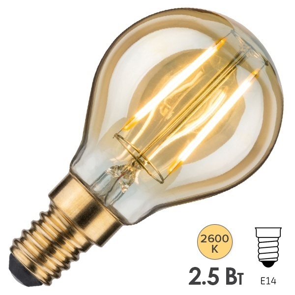 Светодиодная, филаментная лампочка Vintage Paulmann, мощностью 2,5 Ватт, с цоколем E14, теплый свет, золотой цвет колбы 28367