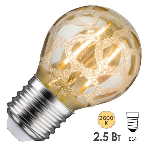 Декоративная, светодиодная, филаментная лампочка шарик Vintage Paulmann, 2,5Вт, E14, цвет колбы золотой кроко-лед, теплый свет 28383