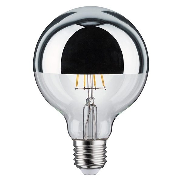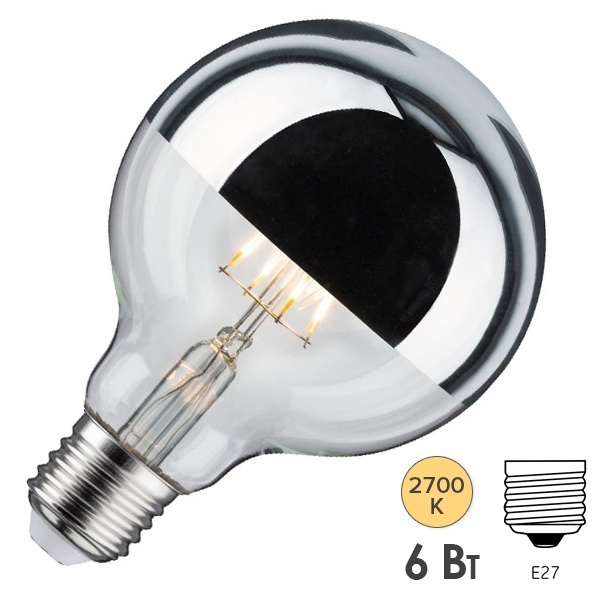 Диммируемая, шарообразная лампочка LED G95 с нитевидными светодиодами, мощностью 6 Ватт, зеркальное покрытие, теплый свет 28478