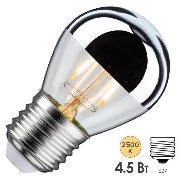 Диммируемая лампочка формы шарик с нитевидными светодиодами, мощностью 4,5 Ватта, с цоколем E27, с зеркальным покрытием, теплый свет 28483