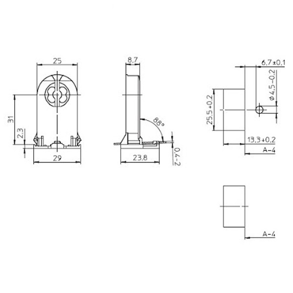 Сквозной патрон G13 с боковыми защёлками со стопором для линейных люминесцентных ламп Т8. 109338.01